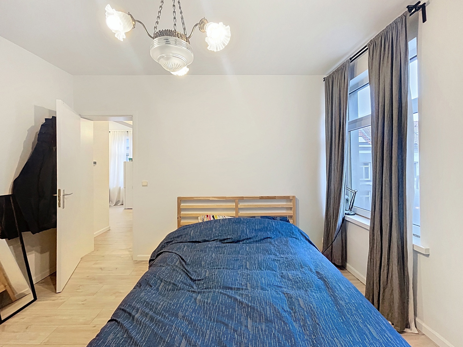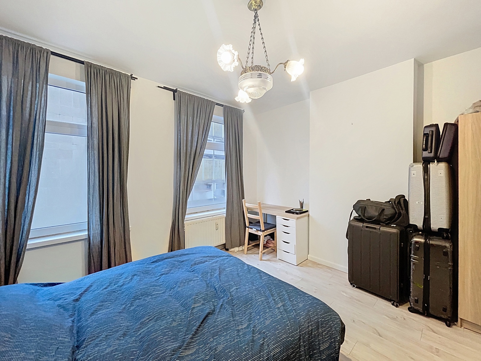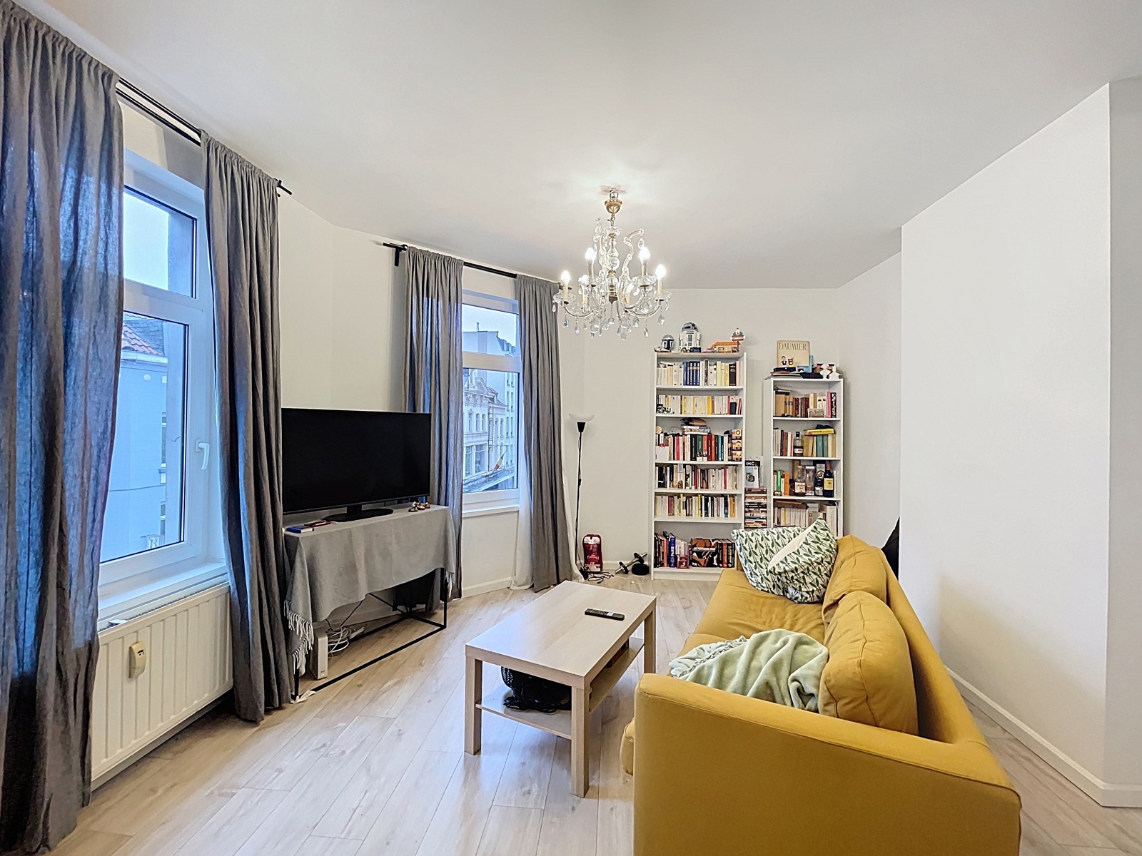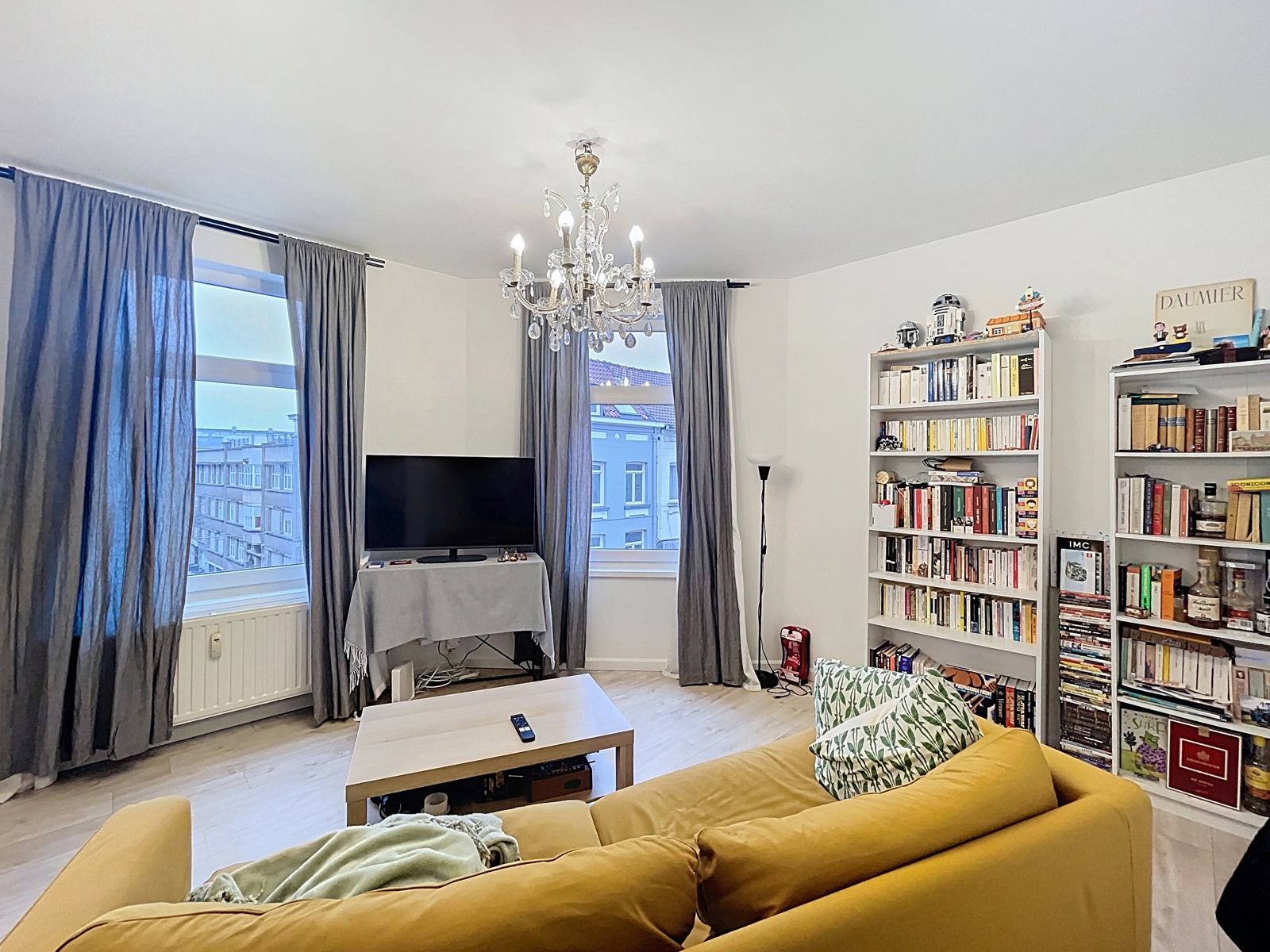 Located in the heart of the Marolles district, just a few steps from Place du Jeu de Balle, By the Way offers this charming unfurnished apartment of approximately 54 m² (according to the EPC), fully renovated, on the 2nd floor of a 3-storey building without an elevator. Layout : living room, dining room, open-plan fully equipped kitchen, large bedroom, and a shower room with WC. Currently rented. Electrical installation compliant. EPC : E. Individual gas boiler. Facade currently under renovation. New co-ownership being created.