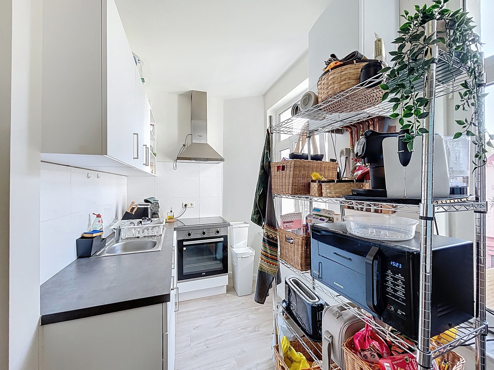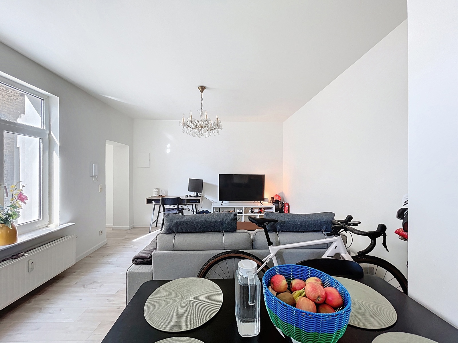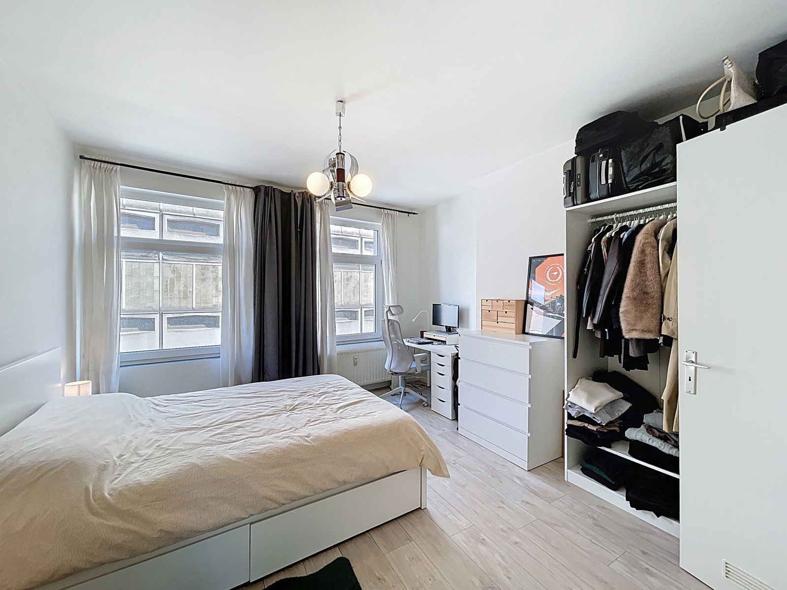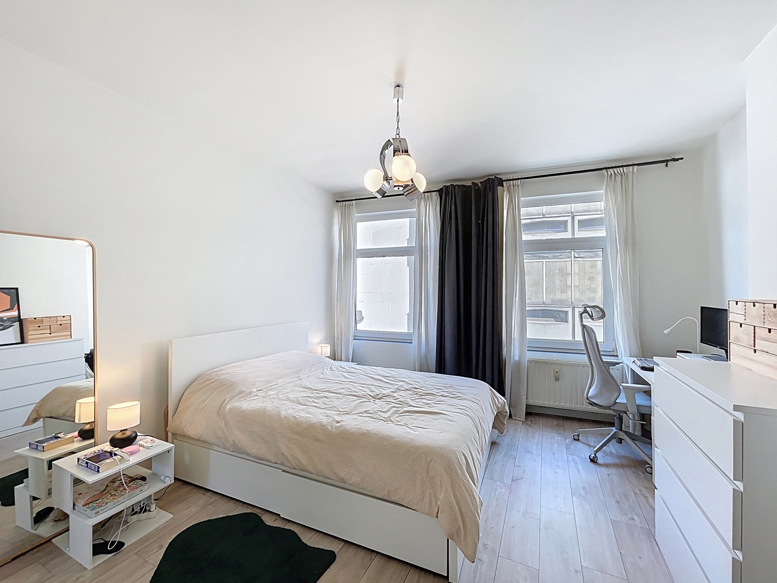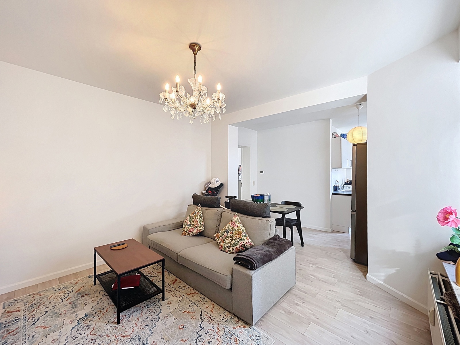 Located in the heart of the Marolles district, just a few steps from Place du Jeu de Balle, By the Way offers this charming unfurnished apartment of approximately 60 m² (according to the EPC), fully renovated, on the 2nd floor of a 3-storey building without an elevator. Layout : living room, dining room, open-plan fully equipped kitchen, large bedroom, and a shower room with WC. Currently rented. Electrical installation compliant. EPC : E. Individual gas boiler. Facade currently under renovation. New co-ownership being created.