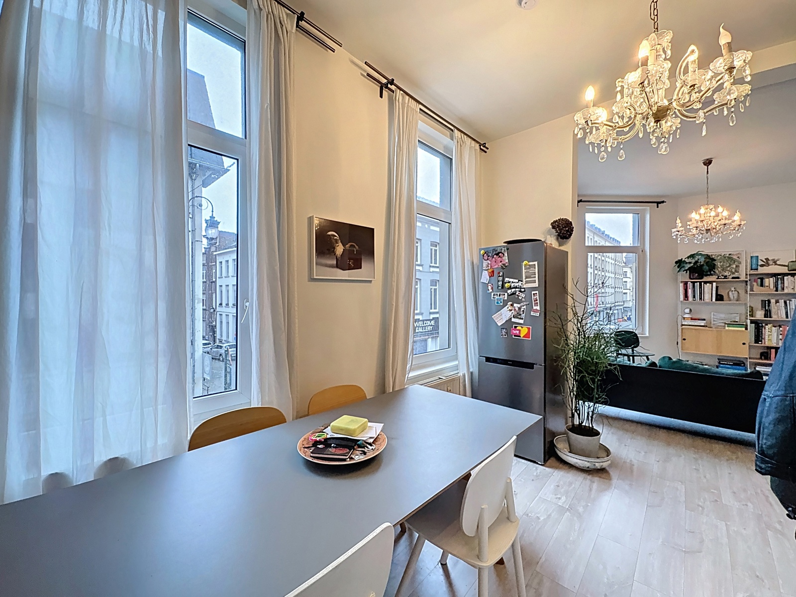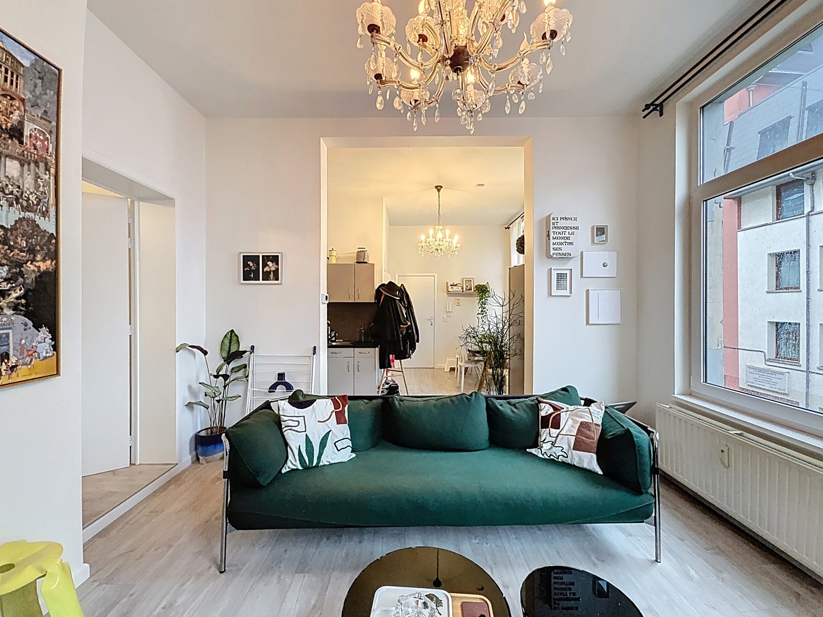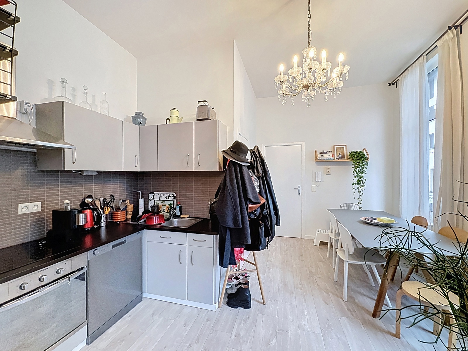 Located in the heart of the Marolles district, just a few steps from Place du Jeu de Balle, By the Way offers this charming unfurnished apartment of approximately 54 m² (according to the EPC), fully renovated, on the 1st floor of a 3-storey building without an elevator. Layout : living room, dining room, open-plan fully equipped kitchen, large bedroom, and a shower room with WC. Currently rented. Electrical installation compliant. EPC : E. Individual gas boiler. Facade currently under renovation. New co-ownership being created.