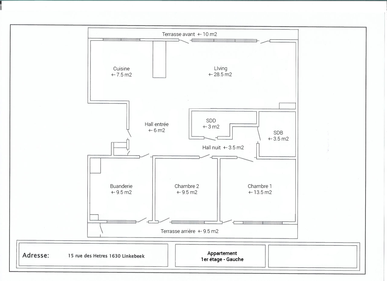 In een rustige doodlopende straat op slechts 850 m van het station en het centrum van Linkebeek biedt By The Way u dit appartement van ca. 85 m² netto aan, met 2 slaapkamers en 2 badkamers. Gelegen op de 1ste verdieping met lift in een rustige kleine mede-eigendom van 7 units. Het appartement, met uitstekende energieprestaties (EPB A), werd volledig gerenoveerd in 2024. Indeling: ruime inkomhal die uitgeeft op de leefruimte van ca. 36 m² met open keuken, terras over de volledige lengte van de woonkamer, grote wasruimte/dressing. Nachthal die toegang geeft tot een hoofdslaapkamer van ca. 13 m² met eigen badkamer en privé-wc en een slaapkamer van ca. 10 m² met eigen doucheruimte en privé-wc. Achterterras over de volledige lengte van het appartement. Lasten: provisie van 250 euro inclusief gemeenschappelijke kosten, privéverbruik verwarming en warm water. Een mooie private kelder is in de prijs inbegrepen. Optioneel: een gesloten garagebox met automatische sectionaalpoort en mogelijkheid om ervoor te parkeren voor 110€. Technieken: collectieve gascondensatieketel met elektronische calorimeters, dubbele ventilatie (D-systeem), aluminium ramen met dubbele beglazing, massief parket, veiligheidsdeur, ingerichte keuken met oven, vaatwasser, vitrokeramische kookplaat en koelkast met vriesvak.