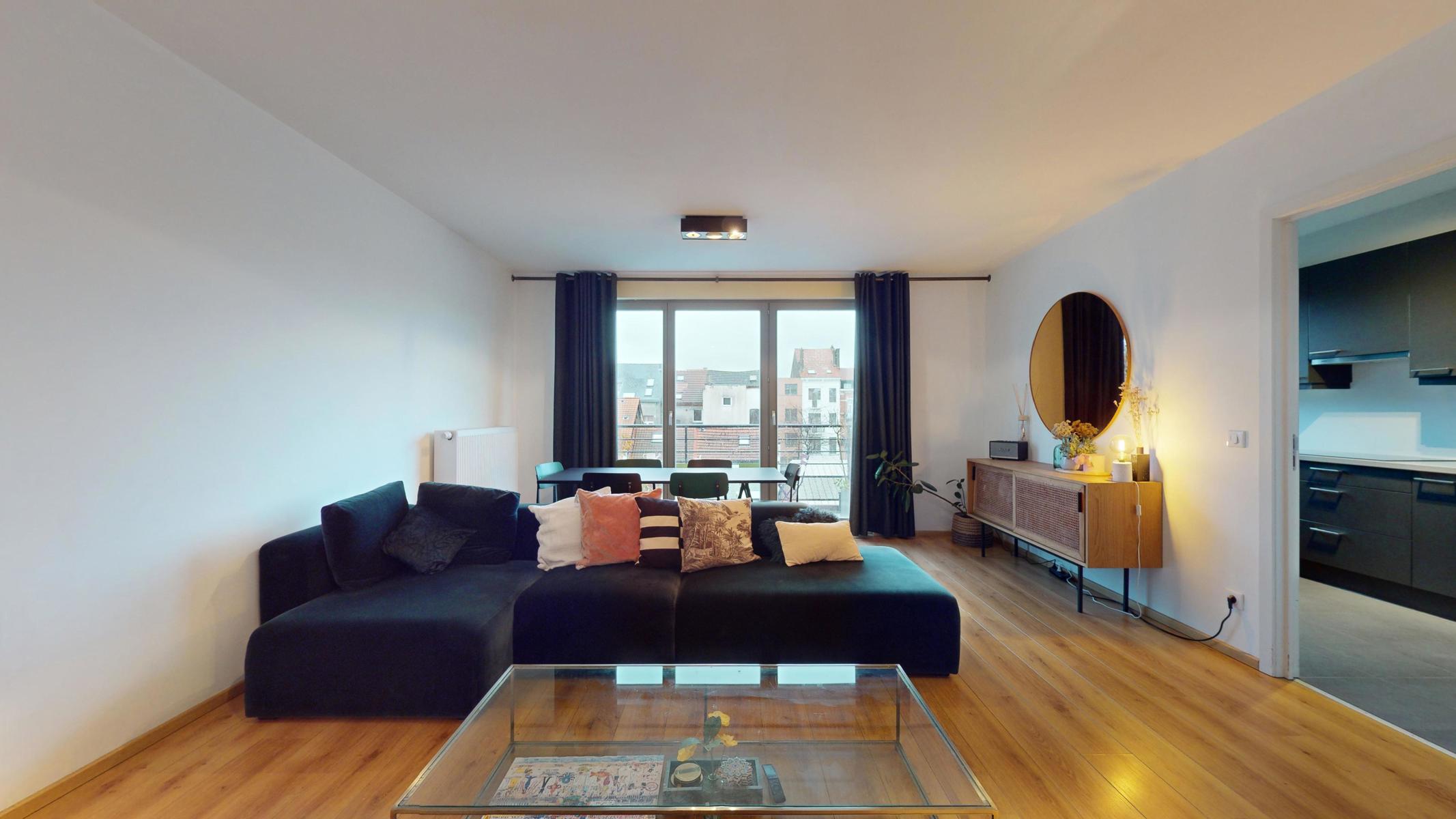 Appartement met 2 slaapkamers gelegen in Clos Mudra 68 te Anderlecht, op de 3ᵉ en bovenste verdieping van een gebouw met lift. Dit appartement met veel lichtinval van 90m² beschikt over een slaapkamer van 16m² en een andere van 11m², een ruime woonkamer van 30m², een ingerichte keuken van 10m², een badkamer met bad, een apart toilet en een terras van 5m² georiënteerd op het zuidoosten. Een kelder is inbegrepen. Ramen in hout met dubbele beglazing. Gemeenschappelijke verwarming met warmtekrachtkoppeling en een elektrische boiler voor de productie van warm water. De elektriciteit is conform. Het appartement ligt in een rustige en groene woonwijk van Anderlecht, die een aangename leefomgeving biedt en toch dicht bij alle essentiële voorzieningen ligt. De buurt heeft een uitstekende bereikbaarheid dankzij de nabijheid van het openbaar vervoer. Op slechts enkele minuten afstand vindt u winkels, supermarkten, scholen en sportfaciliteiten. Het is ook gelegen nabij het Astridpark en het Pedepark, ideaal voor wandelingen, buitenactiviteiten of om gewoon van de natuur te genieten. De locatie biedt tevens een snelle toegang tot de belangrijkste verkeersaders, wat het gemakkelijk maakt om naar het centrum van Brussel en de omliggende gebieden te reizen. Ideaal voor wie op zoek is naar een balans tussen rustige woonkwaliteit en stedelijke voorzieningen.