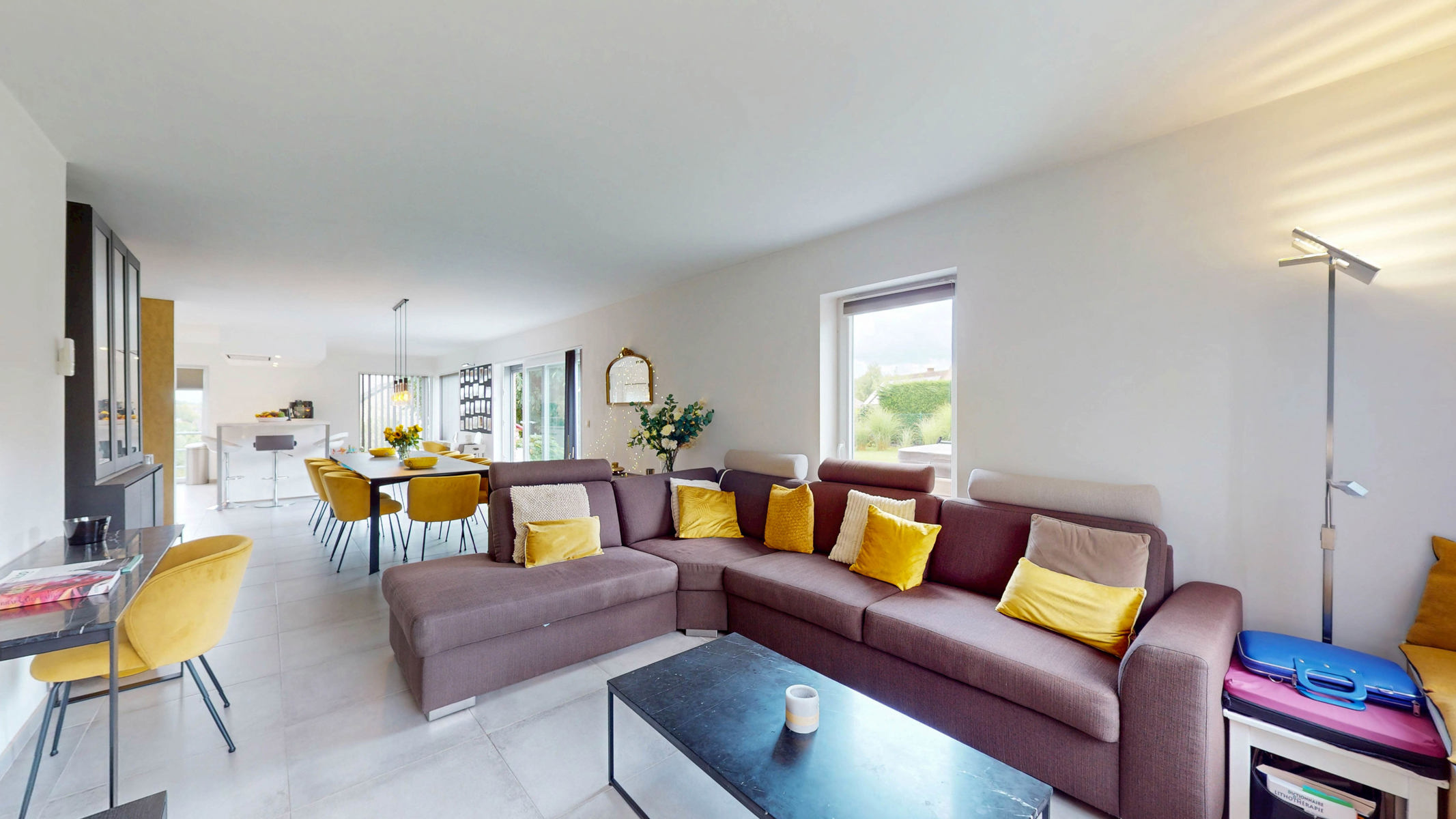 In de woonwijk “Grange des Champs”, aan de rand van Waterloo, presenteert By the Way u deze prachtige villa met mooie volumes, met een netto bewoonbare oppervlakte van +/- 170 m² op een terrein van 7 are 49 ca. De villa is als volgt ingedeeld: Op de begane grond een inkomhal met vestiaire en apart toilet, een bureau dat ook als slaapkamer kan worden gebruikt, een superuitgeruste keuken die uitkomt op de woonkamer, een woonkamer die uitkomt op een groot terras met jacuzzi en een mooie tuin op het zuidzuidwesten. Op de verdieping: een nachthal, een slaapkamer met kasten, een doucheruimte met toilet en wasruimte, een master suite met airconditioning, een kleedkamer en een badkamer met toilet, douche en apart bad, een slaapkamer met toegang tot een mooie ontspanningsruimte. Een grote kelder, een garage voor 1 auto en twee parkeerplaatsen maken het geheel compleet. Energie: PVC-ramen met dubbele beglazing. Gascondensatieketel. Vloerverwarming op de begane grond. Warmwatervoorziening door elektrische boiler, de ketel wordt gevoed door 2 thermische panelen. 30 fotovoltaïsche panelen. Dubbele ventilatiesysteem. Regenwatertank van 5000 liter met pomp aangesloten op het toilet, de wasmachine, de kranen in de garage en buiten. Robotmaaier. Alarm. EPC: B. Elektriciteit conform.
