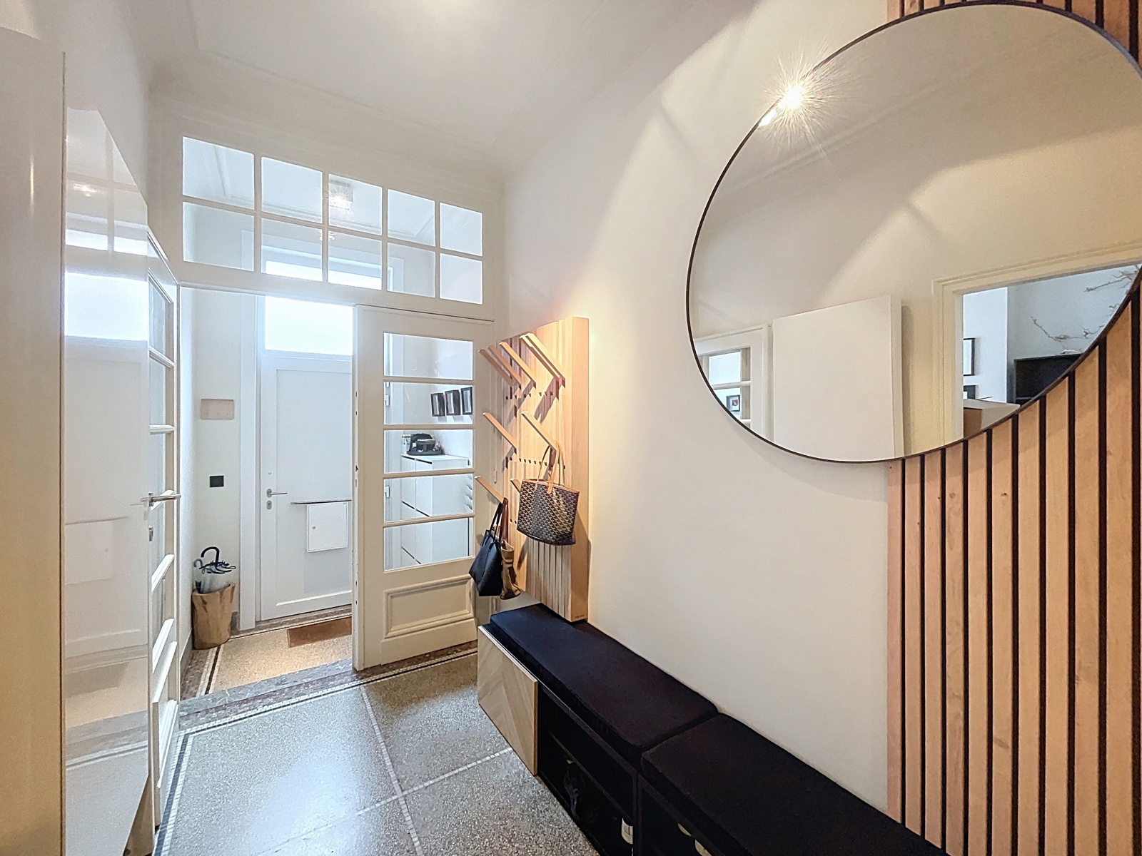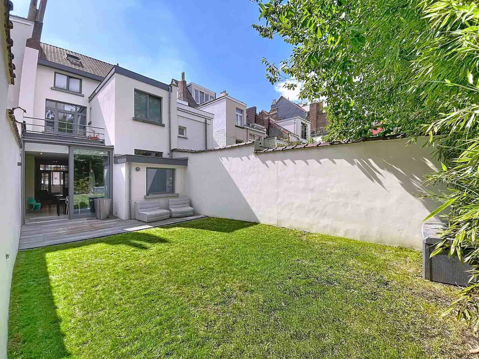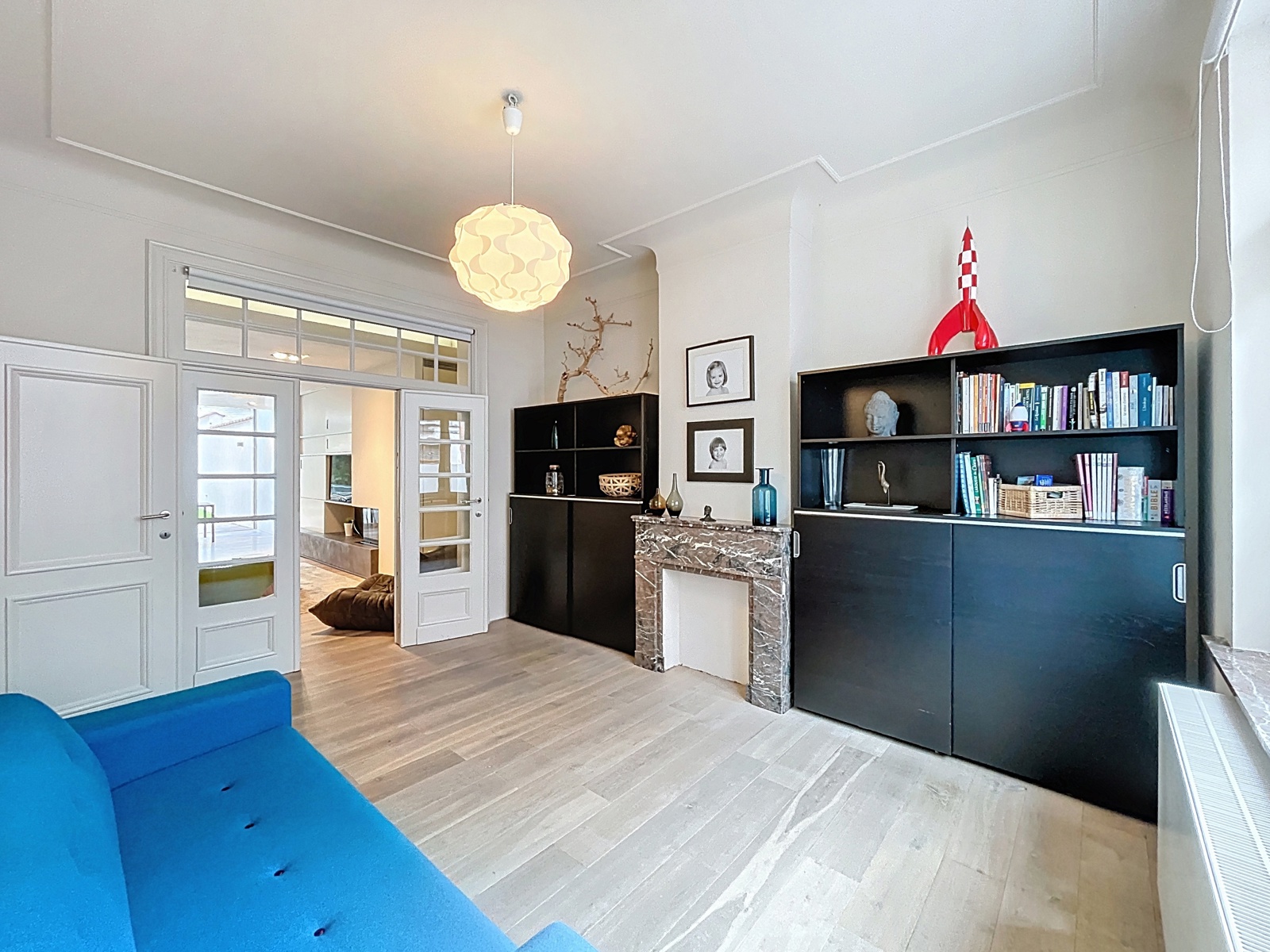 In afwachting van de ondertekening van het compromis | IXELLES – Wijk Flagey – Gelegen in een rustige straat tussen de Vijvers van Elsene en het Flageyplein, stelt By the Way u deze prachtige eengezinswoning voor met een bewoonbare oppervlakte van 229 m² (volgens EPC). Volledig gerenoveerd met hoogwaardige materialen en afwerkingen, strekt het huis zich uit over 3 niveaus met royale volumes en mooie plafondhoogtes. INDELING: Op het gelijkvloers leidt een inkomhal met originele mozaïekvloer naar een eerste slaapkamer of bureau, een ruime leefruimte met open haard en een hyper-uitgeruste open keuken. Een groot schuifraam geeft rechtstreeks toegang tot een aangename tuin van ongeveer 70 m². De eerste verdieping omvat 2 ruime slaapkamers, een bureau en een badkamer met zowel bad als douche. De bovenste verdieping herbergt een lichte master suite met eigen badkamer en ingebouwde kasten. In de kelder: wasruimte, wijnkelder en verschillende ruimtes die extra opslagmogelijkheden bieden. TECHNIEK: EPC D, conforme elektriciteit, condensatieketel op gas (2011), nieuwe driedubbele beglazing met thermische en akoestische isolatie (2012-2015), nieuw geïsoleerd dak (2007). Een woning die elegantie, comfort en een uitzonderlijke ligging combineert – ideaal voor een gezin dat zich in het hart van Elsene wil vestigen, in een groene en levendige omgeving.