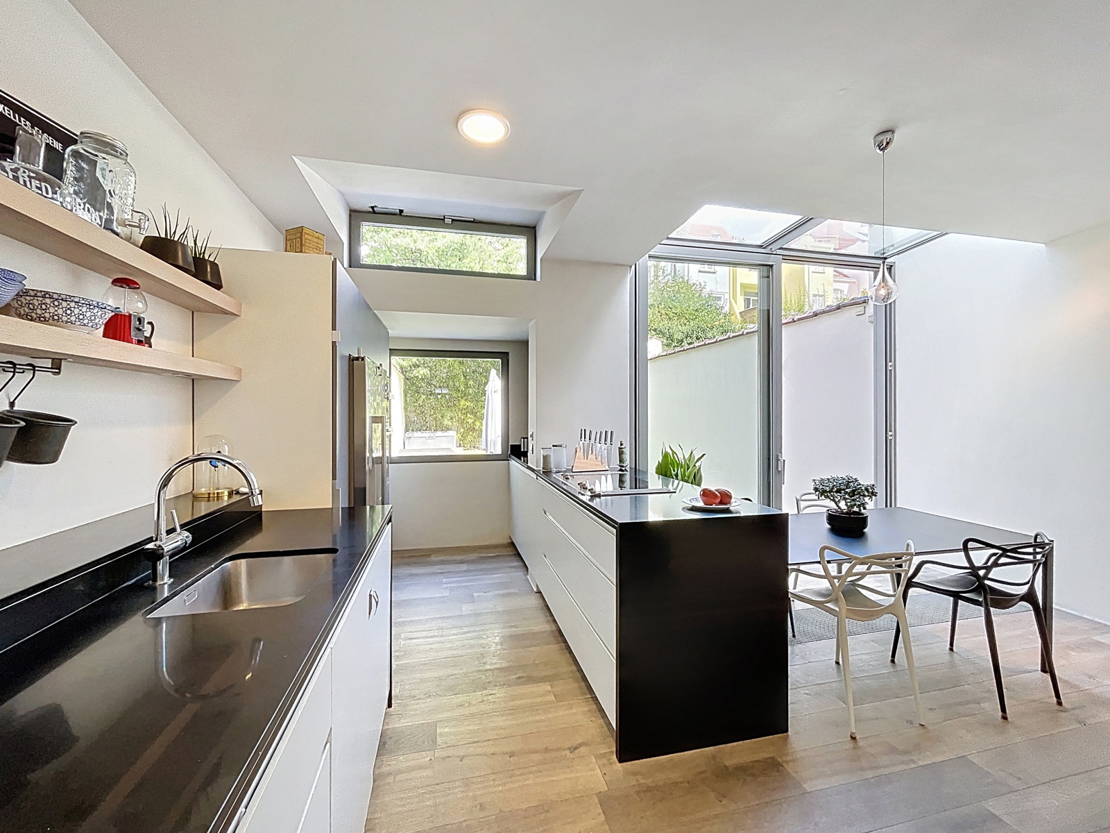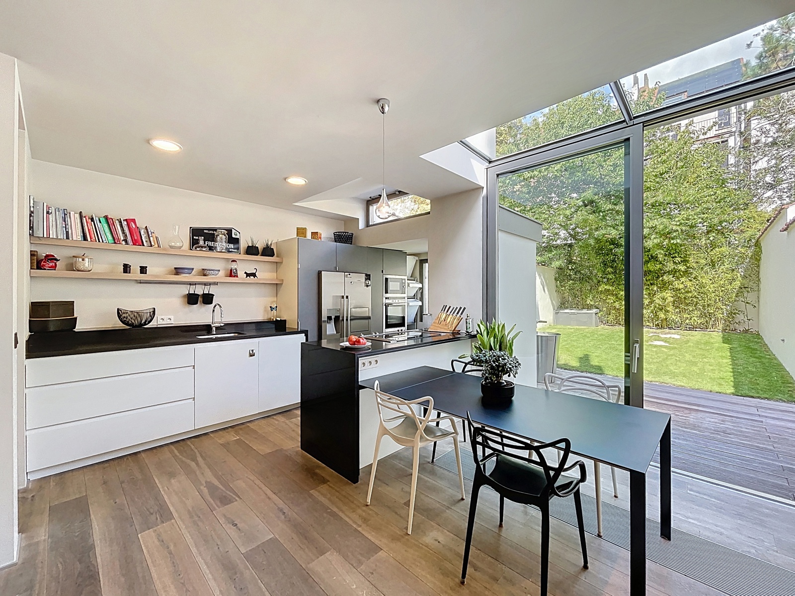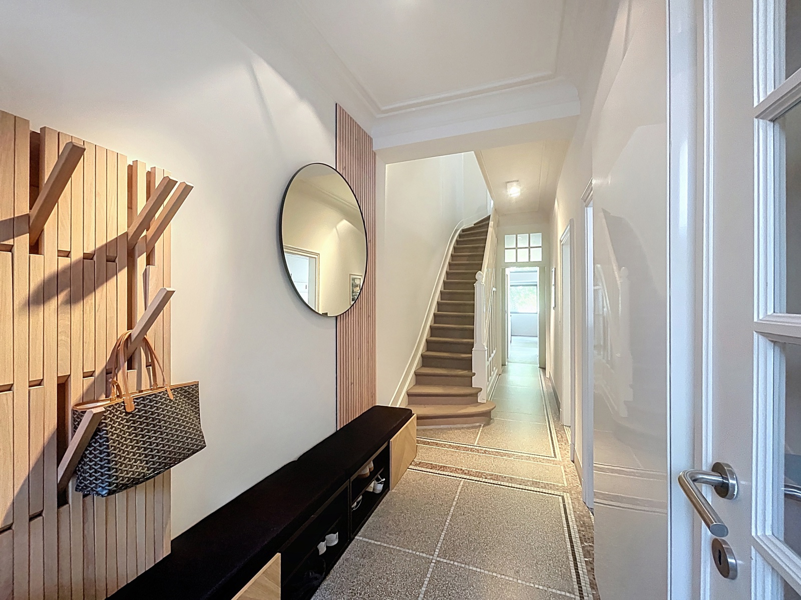In afwachting van de ondertekening van het compromis | IXELLES – Wijk Flagey – Gelegen in een rustige straat tussen de Vijvers van Elsene en het Flageyplein, stelt By the Way u deze prachtige eengezinswoning voor met een bewoonbare oppervlakte van 229 m² (volgens EPC). Volledig gerenoveerd met hoogwaardige materialen en afwerkingen, strekt het huis zich uit over 3 niveaus met royale volumes en mooie plafondhoogtes. INDELING: Op het gelijkvloers leidt een inkomhal met originele mozaïekvloer naar een eerste slaapkamer of bureau, een ruime leefruimte met open haard en een hyper-uitgeruste open keuken. Een groot schuifraam geeft rechtstreeks toegang tot een aangename tuin van ongeveer 70 m². De eerste verdieping omvat 2 ruime slaapkamers, een bureau en een badkamer met zowel bad als douche. De bovenste verdieping herbergt een lichte master suite met eigen badkamer en ingebouwde kasten. In de kelder: wasruimte, wijnkelder en verschillende ruimtes die extra opslagmogelijkheden bieden. TECHNIEK: EPC D, conforme elektriciteit, condensatieketel op gas (2011), nieuwe driedubbele beglazing met thermische en akoestische isolatie (2012-2015), nieuw geïsoleerd dak (2007). Een woning die elegantie, comfort en een uitzonderlijke ligging combineert – ideaal voor een gezin dat zich in het hart van Elsene wil vestigen, in een groene en levendige omgeving.